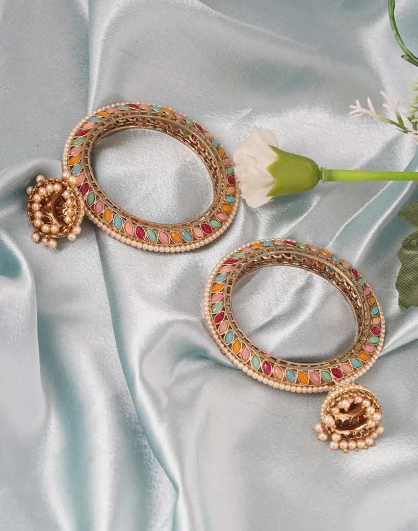 The delicate floral detailing brings a natural feminine beauty, while the kundan stones introduce a radiant and regal appeal. Whether you pair them with sarees, anarkalis, lehengas, or festive suits, these bangles instantly elevate your look with refined sophistication. Furthermore, the antique gold finish is versatile enough to complement multiple colour palettes and traditional outfits.