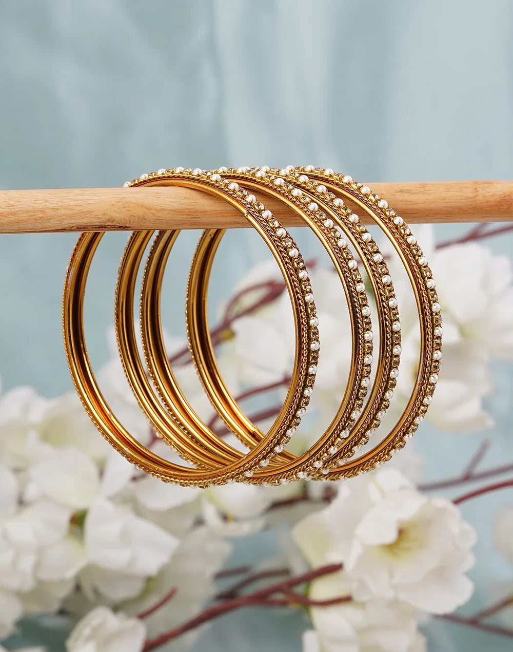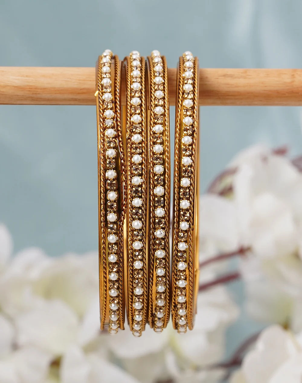 Set of 4 Antique pearl stones bangles-bellabangles