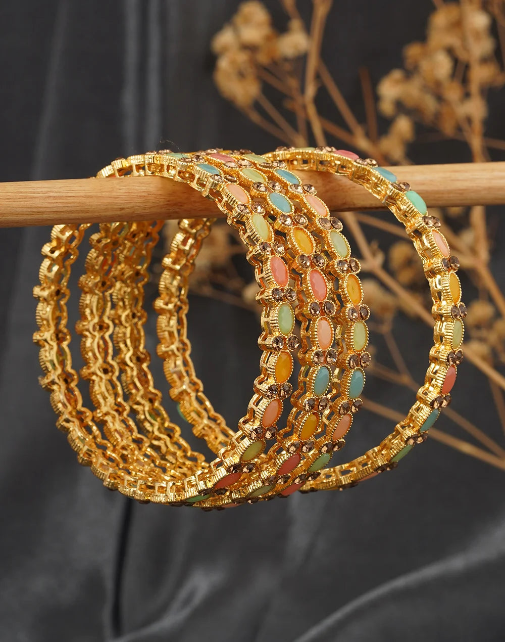 Set of 4 Gold Plated Bangles with Vibrant Stones -Bellabangles