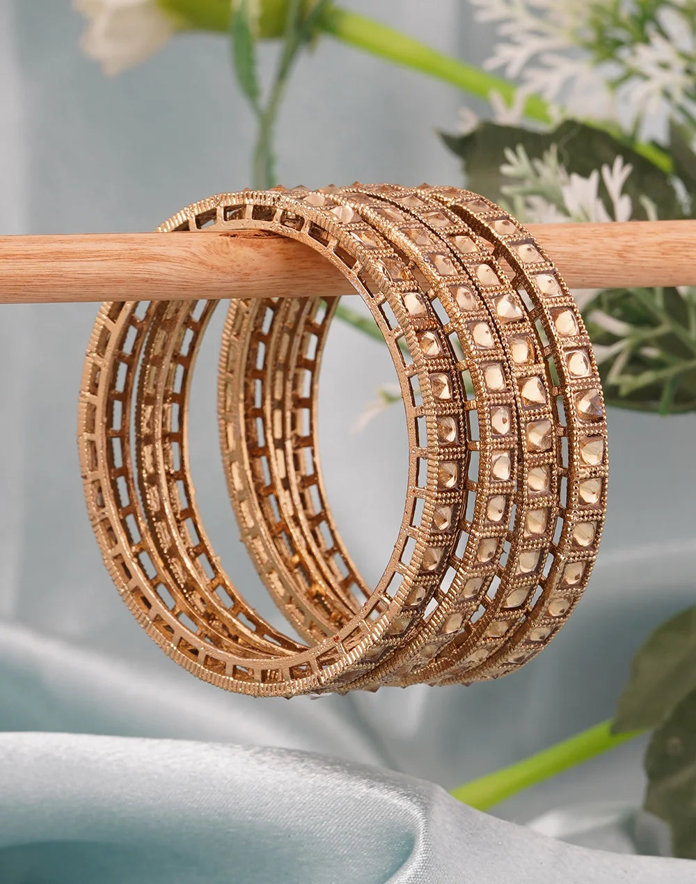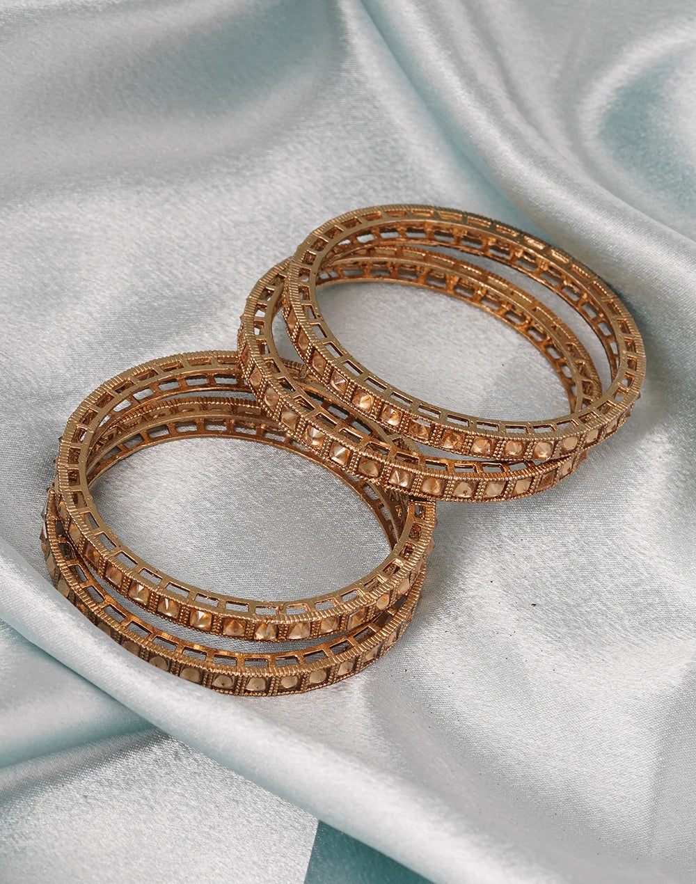 Set Of 4 Gold-Plated & Kundan-Studded Bangles