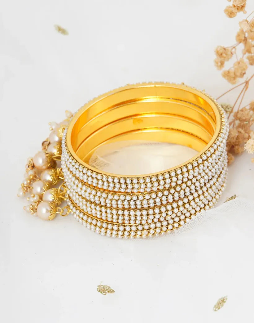 Set of 4 Gold-Plated Pearl Latkan Bangles – Pearl Elegance