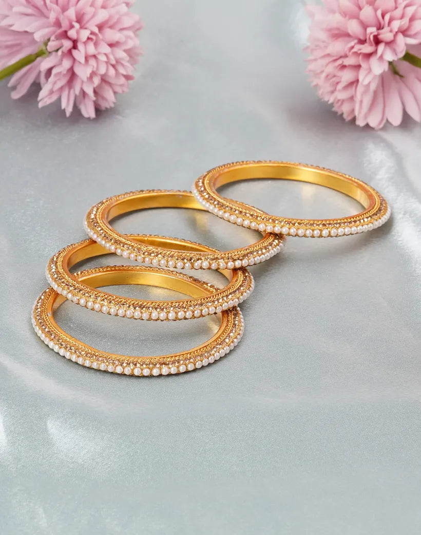 Set of 4 Gold-Plated Pearls Studded Bangles-bellabangles