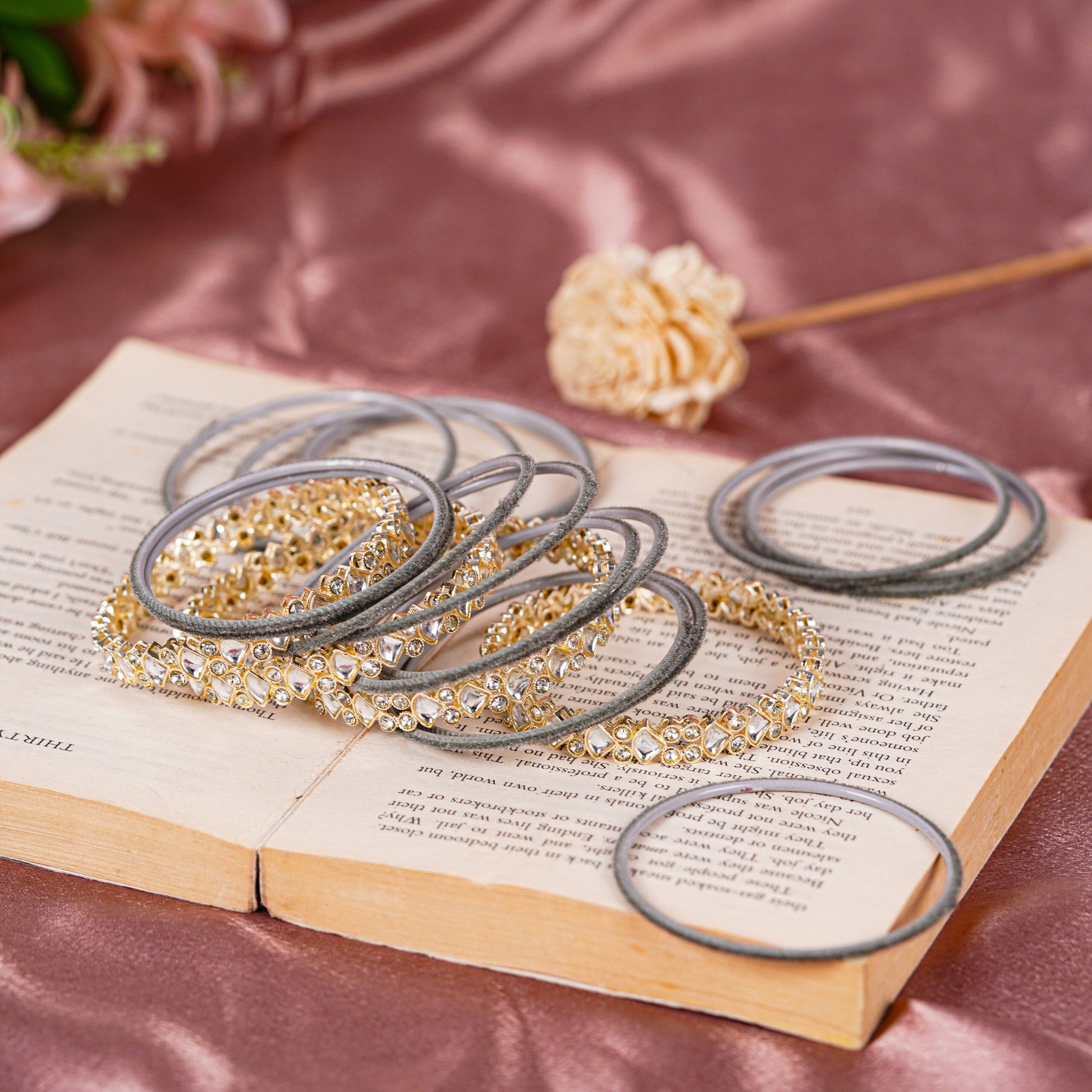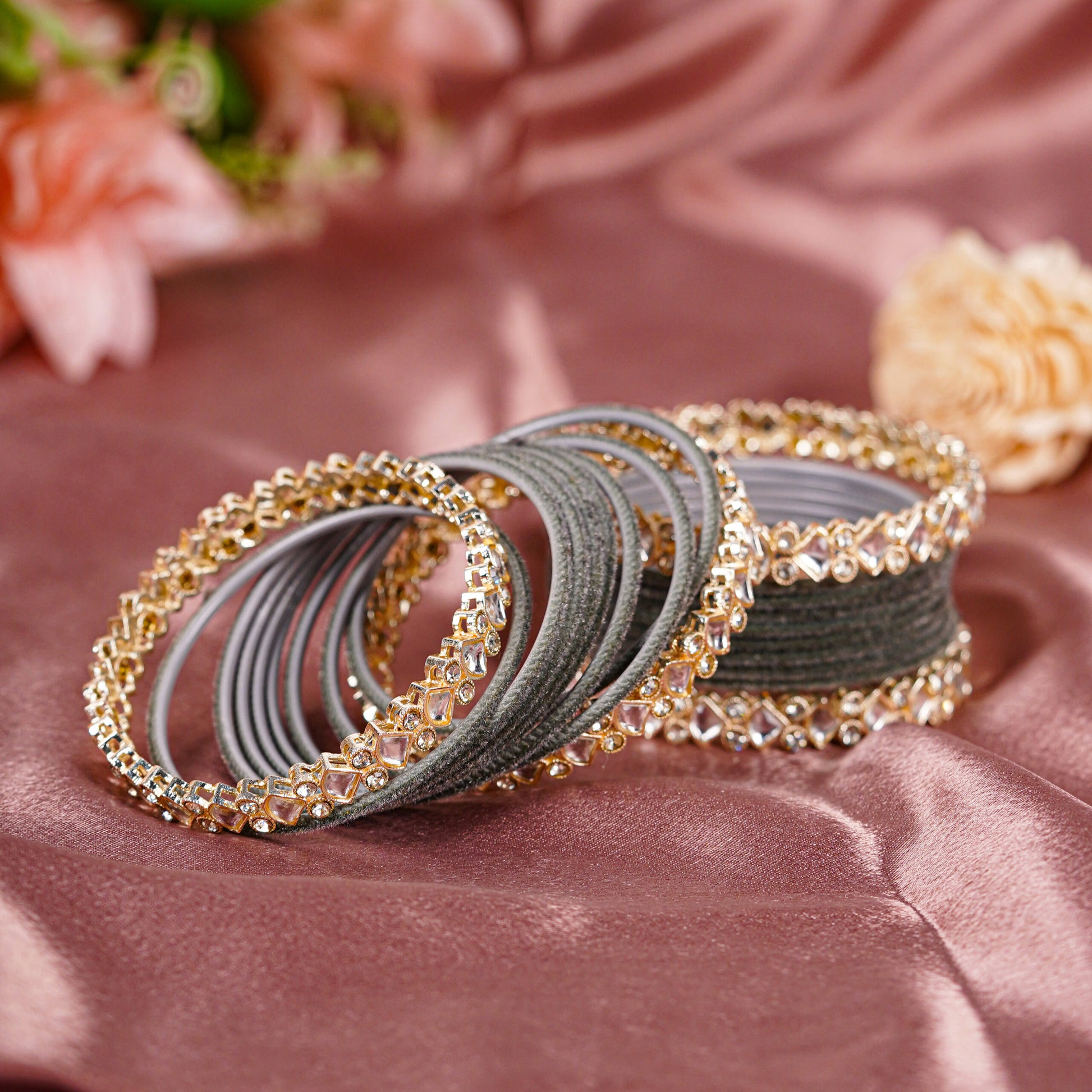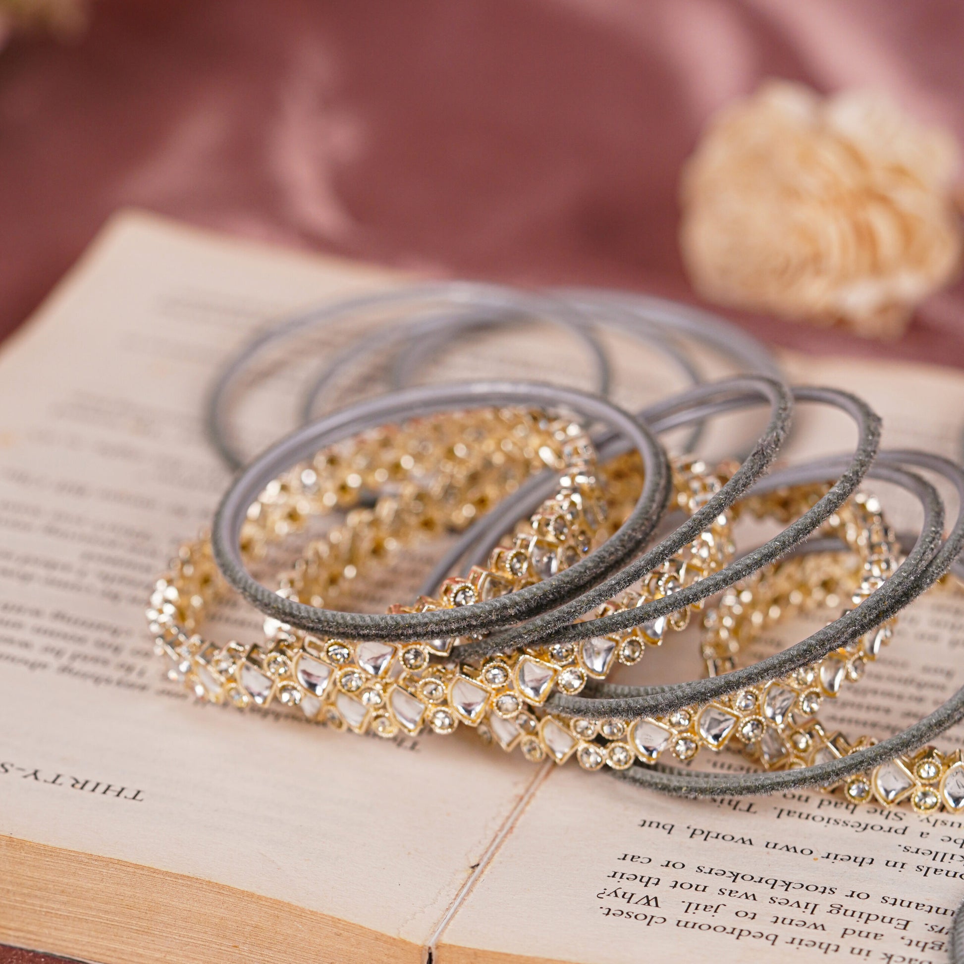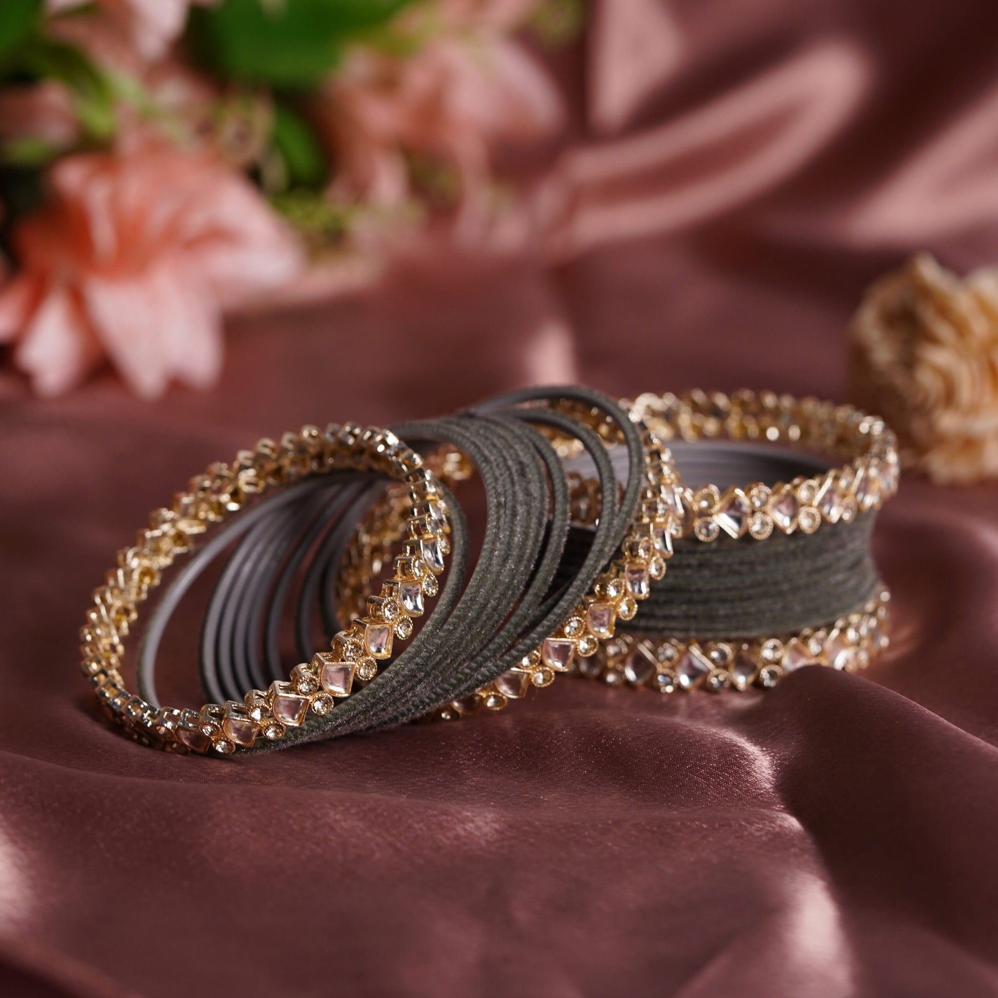 Smoky Grey Velvet Finish Kundan Diamond-Look Bangles