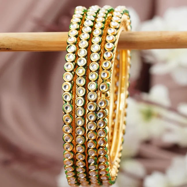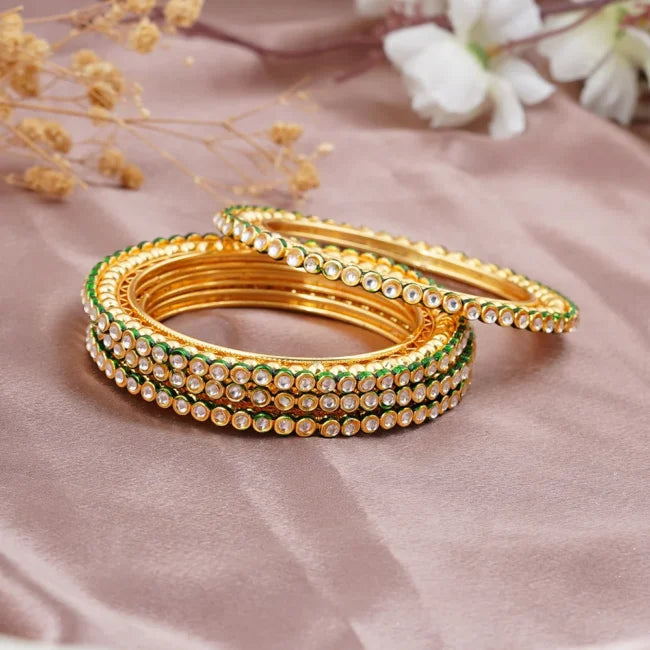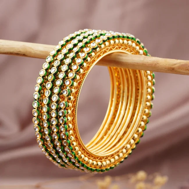 Golden Kundan Stone Bangles with Green Border – Elegant Bridal Set by BellaBangles